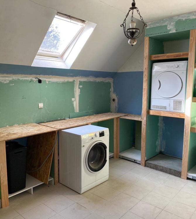 Who said a laundry room couldn't be chic? Since we spend so much time in this place that allows us to keep everyone clean, as much as it is pleasant! It's the pretty idea of ​​@oriane.home.deco: a little zellige on the wall, caning on the ceiling, and our superb Authentic Blond on the floor, and that’s all!